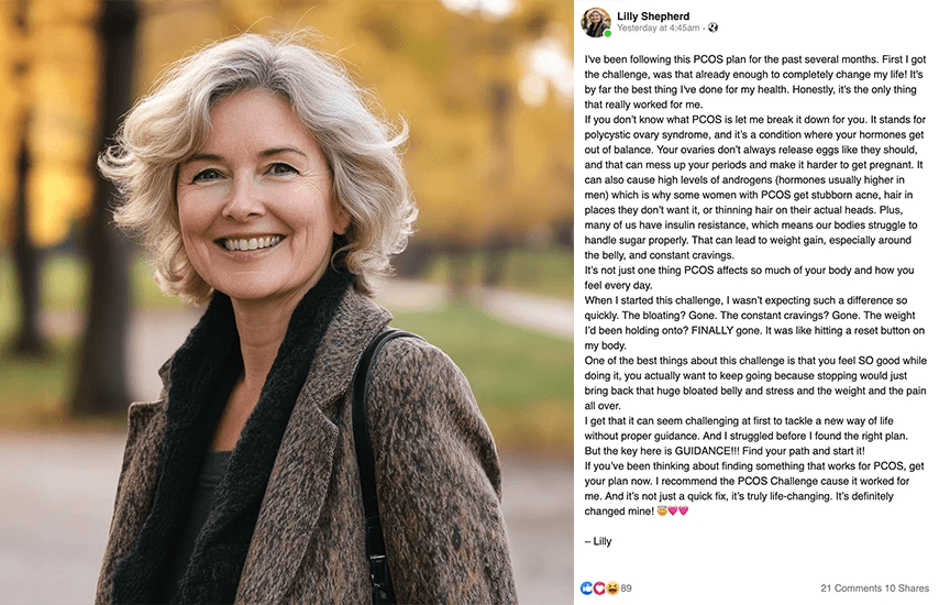 It’s risk-free — a simple PCOS challenge. I’m telling all my friends about it… Give it a try!